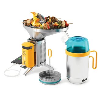 The BioLite CampStove Complete Cook Kit is an all-in-one cooking kit that brings the convenience of a full kitchen to the outdoors. The kit includes the CampStove 2+, KettlePot, Portable Grill and CoffeePress, making it easy to prepare everything from boiling water to grilled dishes and freshly brewed coffee.