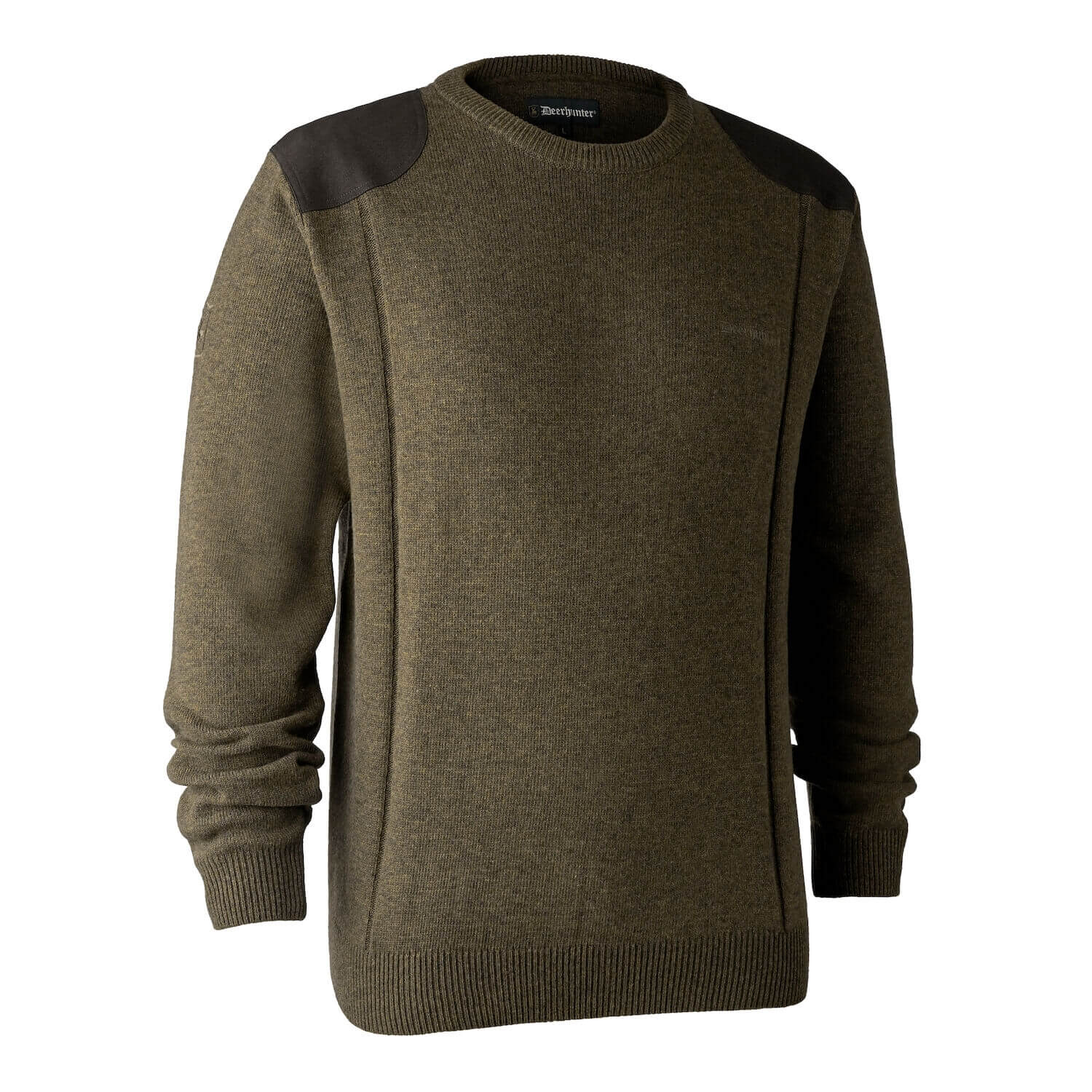 Danish Deerhunter has made an elegant and traditional knitted sweater in lambswool with elastane so that it keeps its beautiful shape. It comes with shoulder and elbow patches of suede which come in a different color.