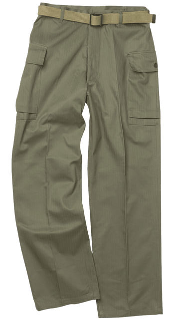 This reproduction of WWII HBT M41 Pants is made of cotton with belt holes and 2 large side pockets.