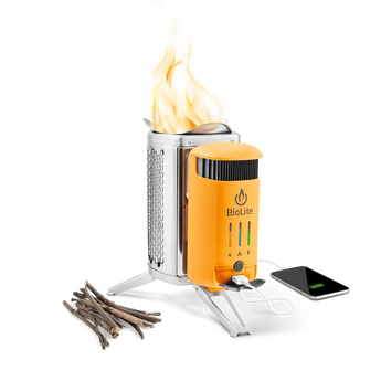 - Converts heat to electricity: The CampStove 2+ has a built-in thermoelectric generator that converts heat into usable electricity. This allows you to charge your devices while you cook. The integrated 3,200 mAh battery pack stores the energy so you can charge even when there's no fire.