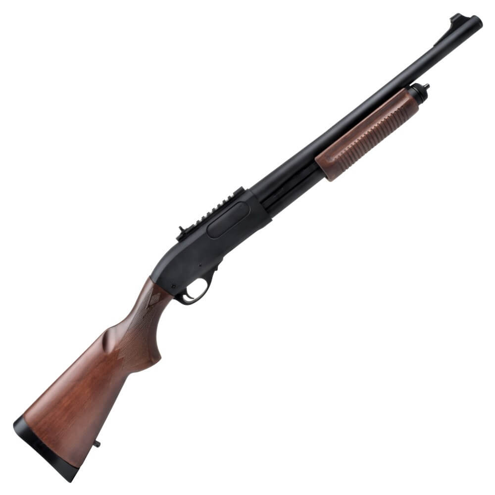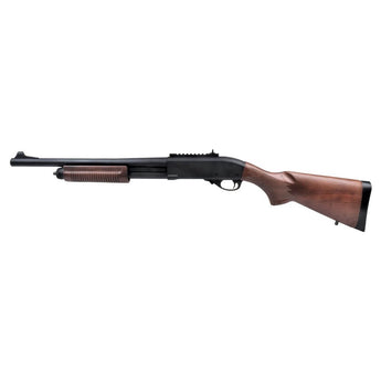 Golden Eagle has here their classic M870 gas shotgun with wooden stock. It is the classic model that you know from movies where especially police etc. use it! The gun has a small gas tank in the butt where the gas is located. It also uses small cartridges where there is room for 30 bullets in one cartridge. Under the barrel there is a small chamber where 2 extra cartridges can be placed so you always have enough shots.