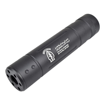 The silencer is designed with 14mm counter-clockwise (CCW) threads , making it compatible with most standard threaded airsoft rifles and pistols. The interior is equipped with sound-absorbing material that reduces the audible sound of shots, which can be an advantage in both CQB and outdoor games.