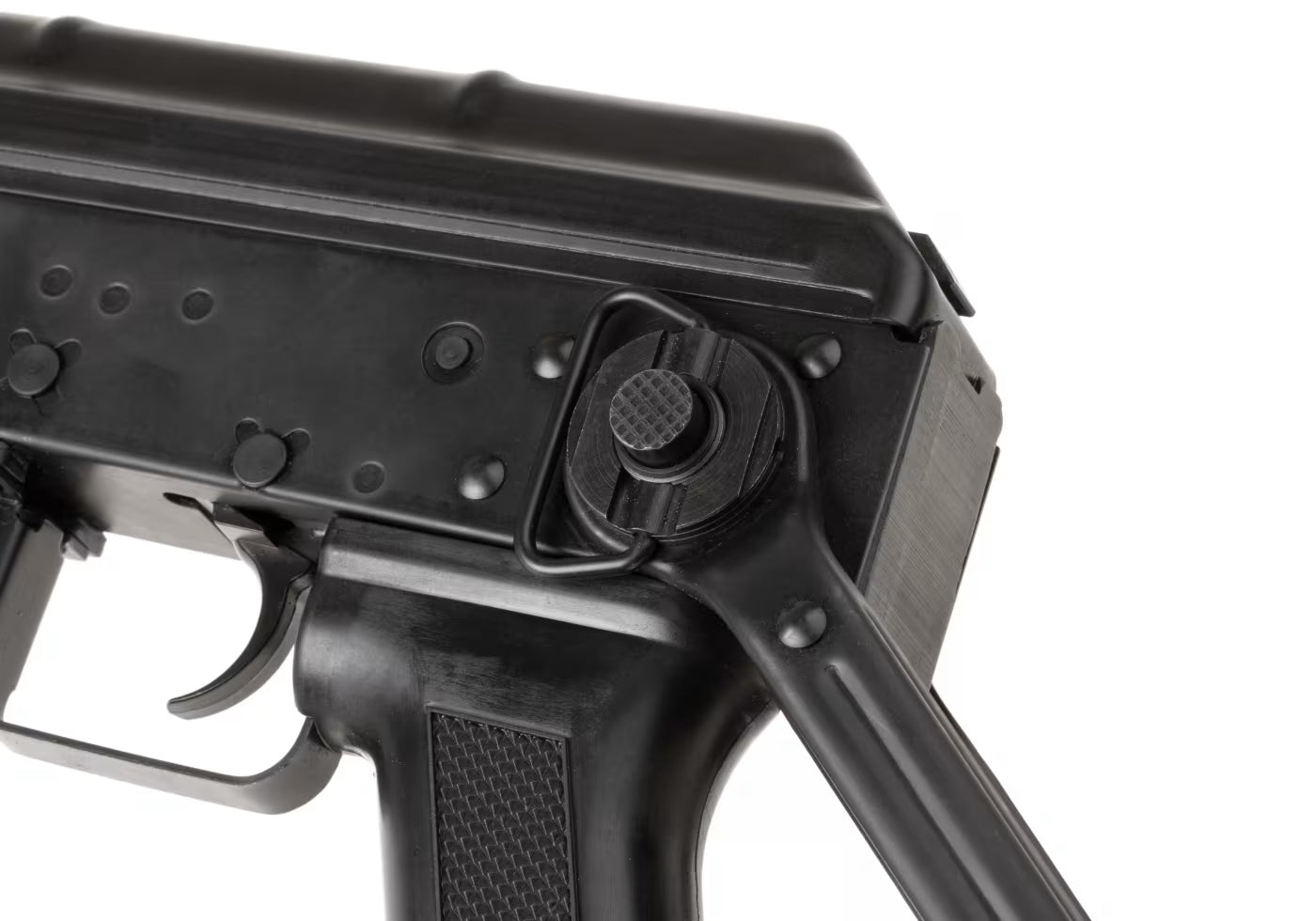 Side-mount: Udstyret med en skinne på siden til montering af AK-specifikke sigtemidler eller rails.