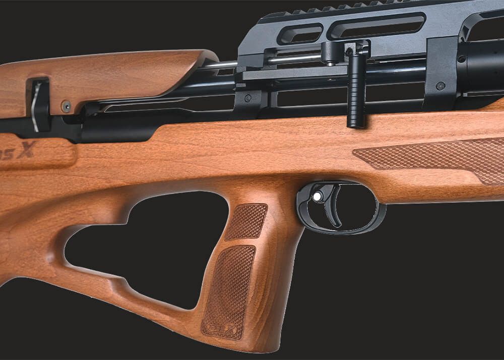 Snowpeak P35X er en avanceret bullpup, der tager den populære P35-platform til et helt nyt niveau. Denne udgave er udstyret med et smukt og holdbart thumbhole-skæfte i træ, som er designet til at kunne betjenes af både højre- og venstrehåndsskytter. Det ergonomiske pistolgreb og forskæftet har en ru tekstur, der sikrer et sikkert greb under alle forhold.