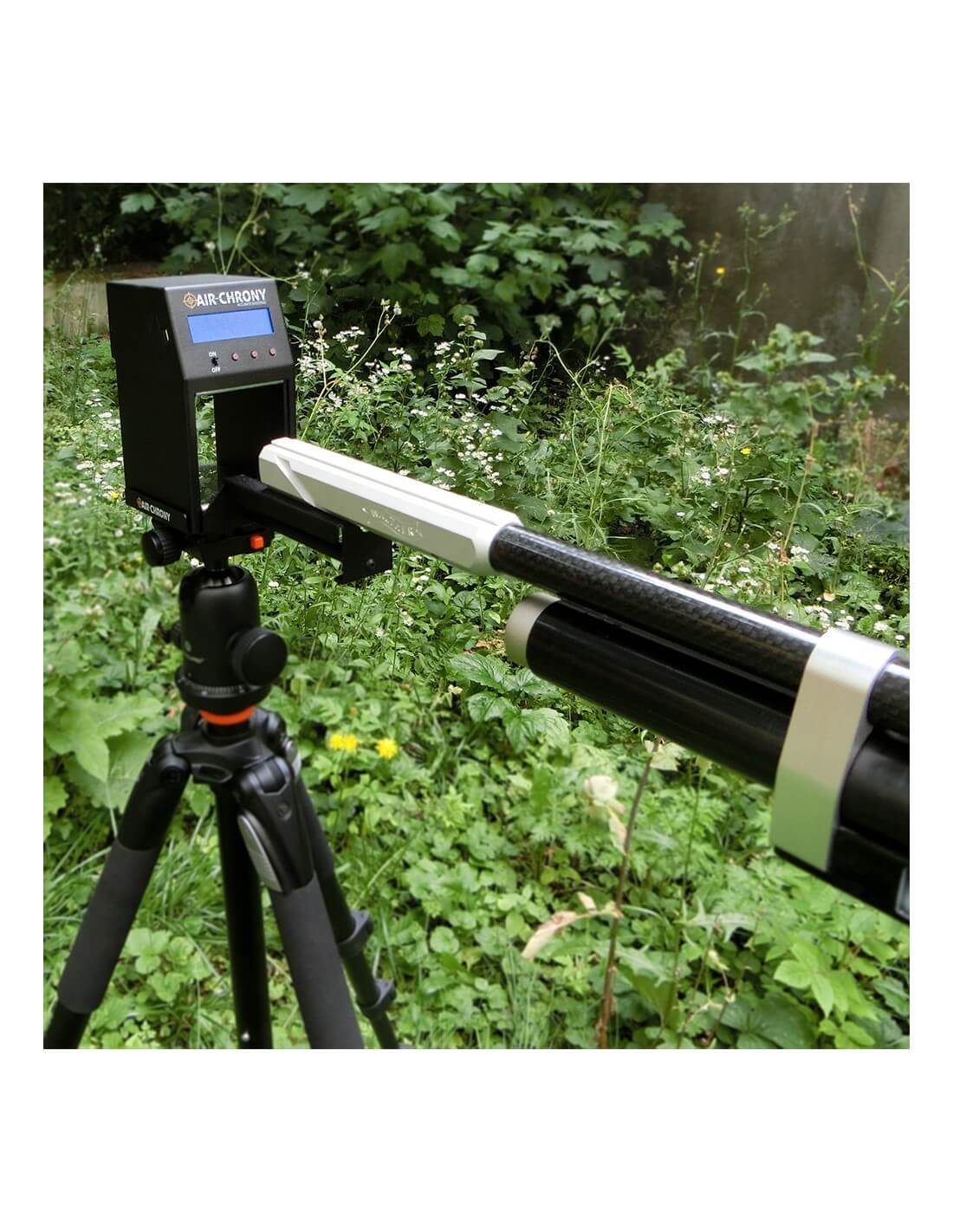 We have a package solution here where you get: The Chronograph in Black, A nylon bag to carry it in, Powersupply, USB cable and free download of the Air Chrony software. Here in the MAX Set you also get a 3-foot and a barrel holder