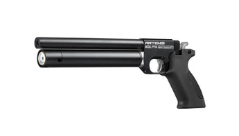 The air pistol here can fire about 40 shots when the small tank is completely filled. It is single action, so you load it by pulling back the cock and filling it with a shot. When you have fired, you have to do the same thing again - It works easily, efficiently and safely.