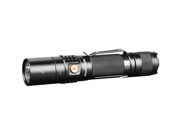 Fenix UC35 V2.0 is a tactical smart flashlight in a compact design, which comes with micro-usb charging and a really cool design! It has a good CREE XP-L HI V3 LED, which provides up to 1000 lumens and can shoot light out to a full 266 meters. It is one-handed operated with 5 different light intensities plus strobe light! It comes built-in with a 3400 mAh large 18650 rechargeable battery, but can also use 2 pcs CR123A (Not recommended as they do not provide anywhere near the same brightness).