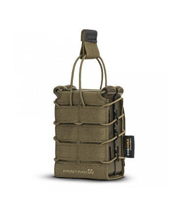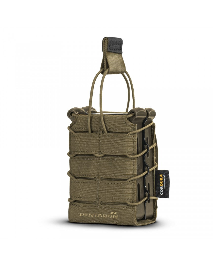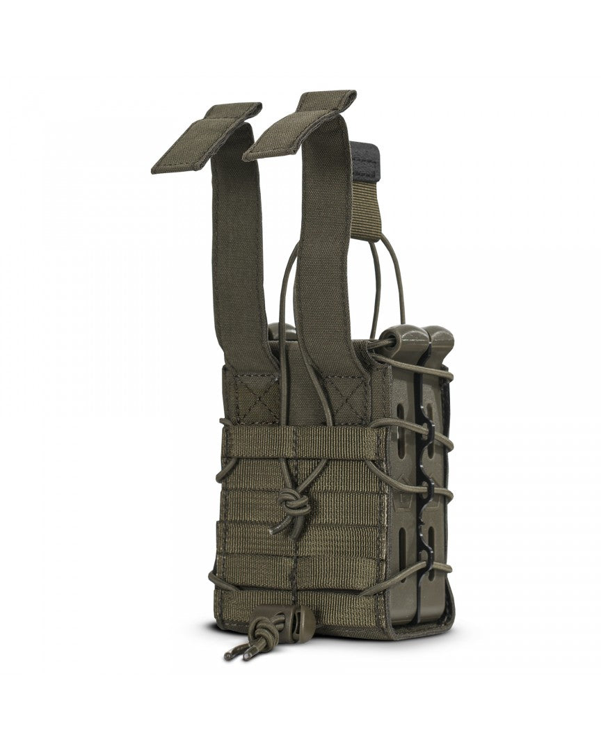 MOLLE/PALS-kompatibilitet gør den nem at montere på alt fra plate carriers til chest rigs og battle belts. Den integrerede non-slip pad låser magasinet fast, mens shock-cord retention og quick-deploy bungee-tab sikrer, at du kan trække et magasin med ét hurtigt og kontrolleret greb – hver gang.
