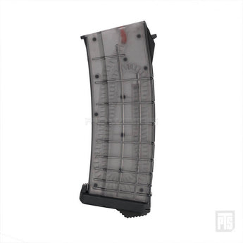 The magazine has room for 155 rounds and is slightly transparent so you have an idea of ​​how many rounds you have left.