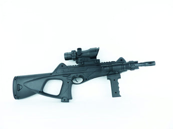Cheap Chinese manual rifle with a very smart function when loading. This is done under the rifle at the front grip, which ensures that especially younger people have an easier time loading the rifle.