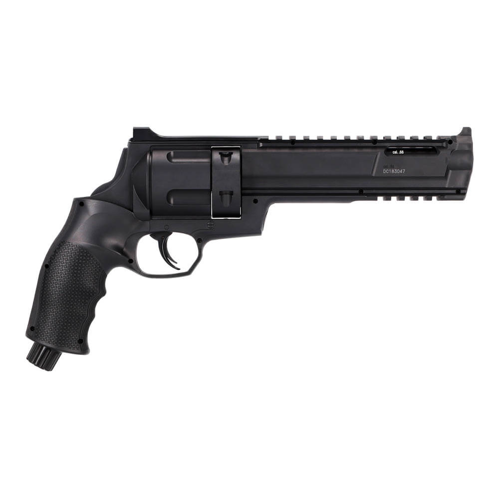 Umarex has their super cool Tactical Revolver TR68, which actually shoots paintball bullets or rubber bullets in size .68!