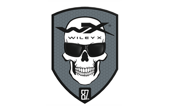 The patch is a skull with the Wiley X logo and a pair of Wiley X glasses