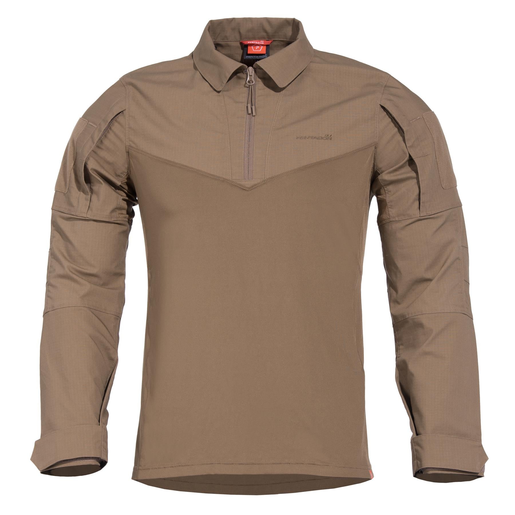 Greek Pentagon Tactical has their really nice Ranger Shirt here, designed with 65% Polyester and 35% Rip-Stop fabric at 215 gsm in the upper part, and 92% Polyester and 8% elastane in the lower part!