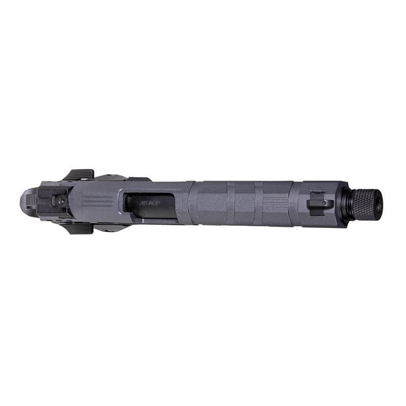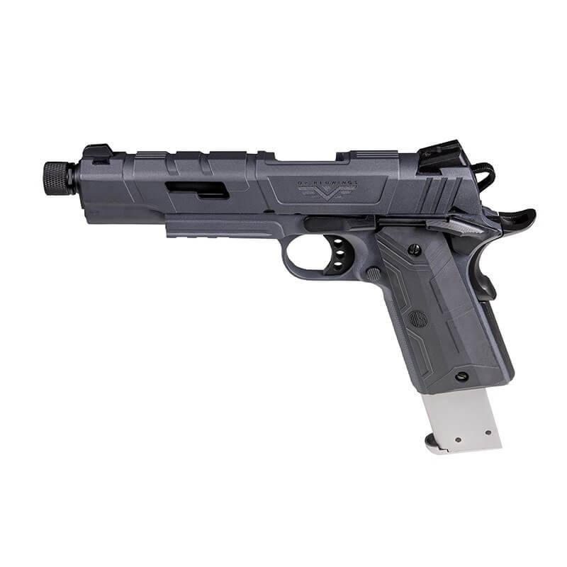 You get a gun with blowback, where the slide moves back and forth like a real gun - In addition, a gun produced in full metal with polymer grip plates. It comes complete with a picatinny rail underneath for e.g. mounting a light and a thread out front for mounting e.g. a silencer if you want this.