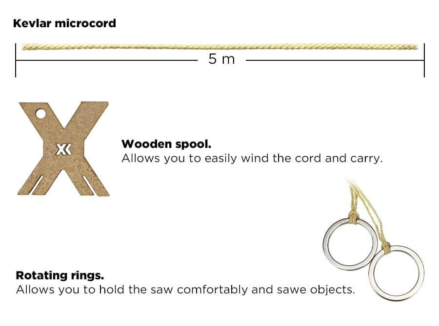 Have you ever sawed through wood with a string? Well, we have the Kevlar saw that's just for that! It comes with a string and 2 jump rings on each side, so you can simply saw through branches and small trees with just a string in just a few minutes.