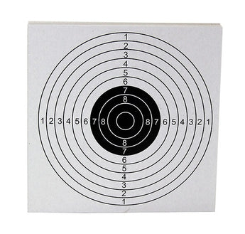Here we have 100 shooting targets measuring 14x14 cm. The motif is a large target with a white background.