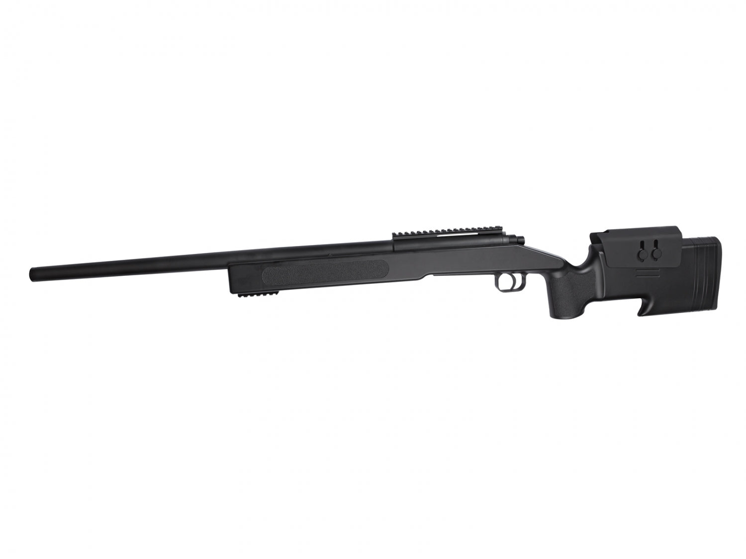 The rifle comes standard with a powerful spring that provides a muzzle velocity of approximately 445 FPS (1.9 joules) with 0.20g bullets. It is equipped with adjustable hop-up for optimal accuracy as well as 20 mm rails for optics and bipod.