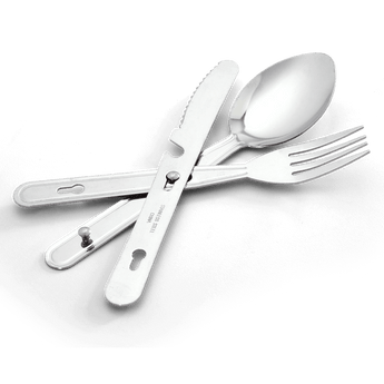 Coghlans has created a Chow Kit, which consists of a fork, knife and spoon, all made in such a way that they can be clicked together and therefore take up no space.