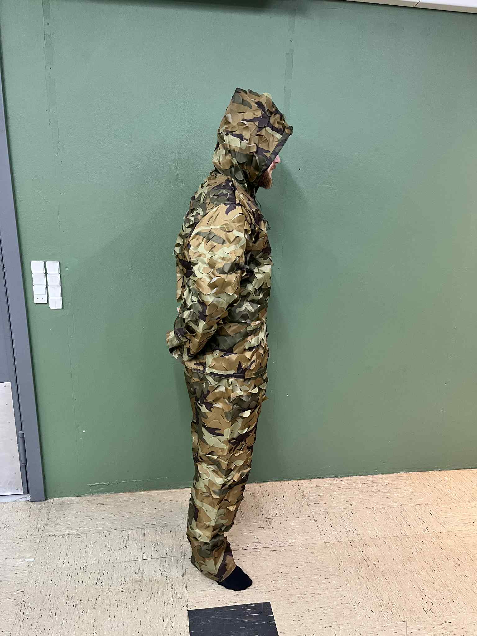 Ghilliesuit in Woodland camouflage.
