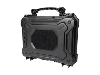 The case is IPX7 waterproof and has an EPDM rubber membrane which provides water resistance. It is made of reinforced polymer, so it can also take a little beating. Last but not least, it comes with a way for you to mount 2 padlocks and thus keep things locked.