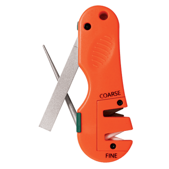 The AccuSharp® 4-in-1 Knife and Tool Sharpener combines all your sharpening needs into one pocket-friendly unit. Equipped with coarse tungsten carbide sharpening blades and fine ceramic bars, the knife sharpener also includes a retractable diamond-tapered bar used for deep serrations.