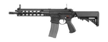 The rifle here has a retractable stock where there is room to fill the battery. The stock is adjustable which allows you to change the length so that it will fit you even better. In addition, the rifle has a pistol grip in an ergonomic design. It comes with a cool front with M-LOK where you can attach all sorts of things as you wish