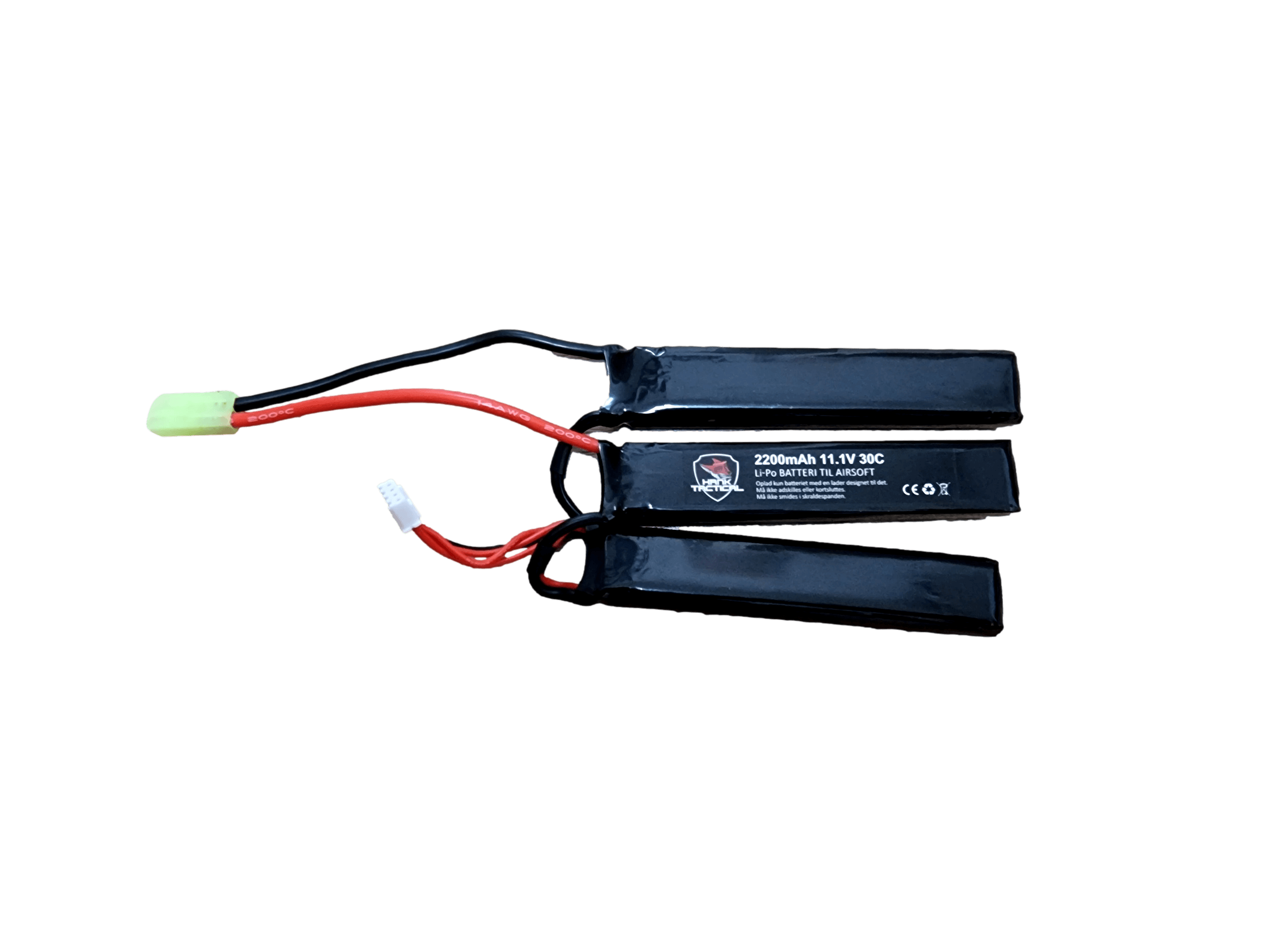 Hank Tactical LiPo battery 11.1V with 2200 mAh.