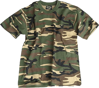 Cool affordable t-shirt for children and young people in good quality. The t-shirt has a round neck and is made in the American camouflage called woodland which was used a lot during, among other things, the Vietnam War.