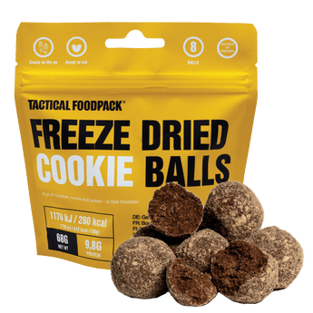 Here we have a batch of freeze-dried cookie balls, which are actually a kind of oatmeal balls, just with biscuits instead.